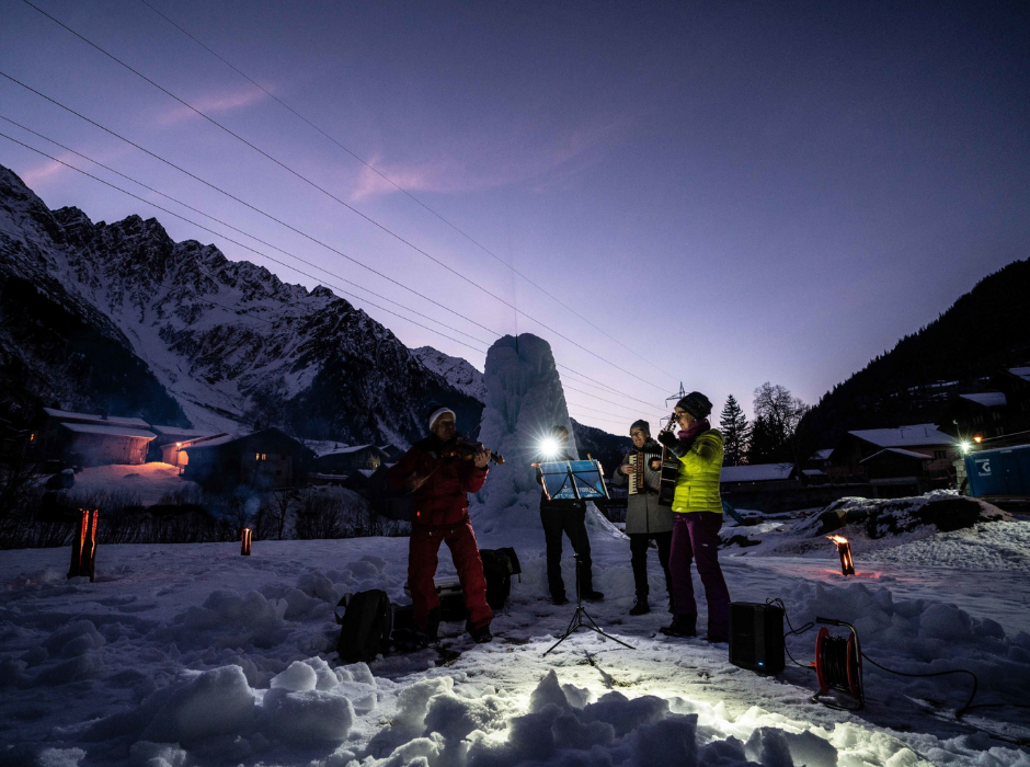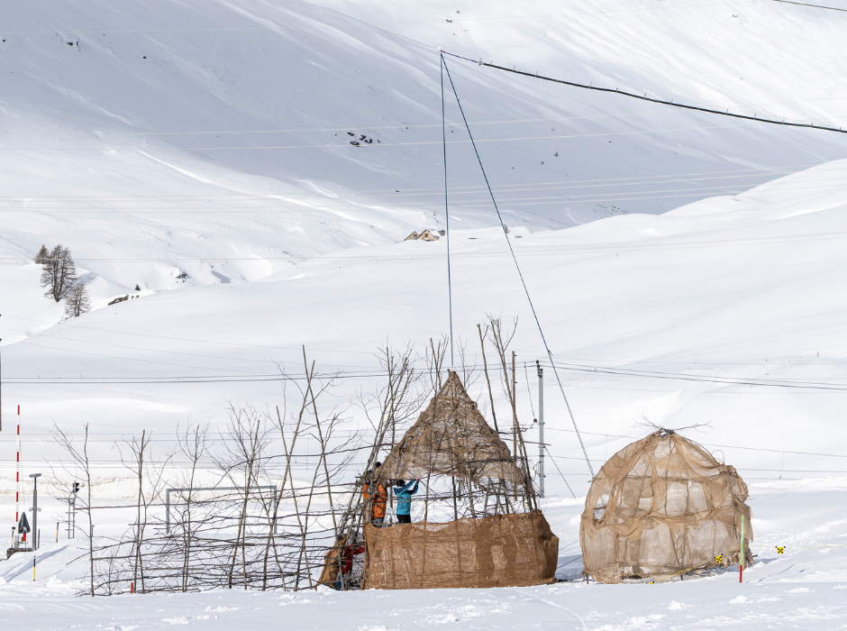 On February 11, 2021, the new snow rope and ice stupa test facility at the Diavolezza valley station in the Upper Engadine was put into operation for the first time.