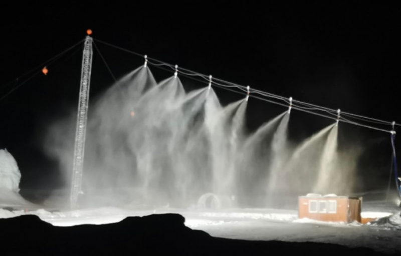 Snow is an excellent form of glacier protection. The production of artificial snow using conventional snow machines (snow cannons/lances) is particularly widespread in ski regions, but requires stable ground conditions. As part of an Innosuisse project, a ground-independent snowmaking system has now been developed for the first time, primarily for glacier protection to secure frozen freshwater reserves.
